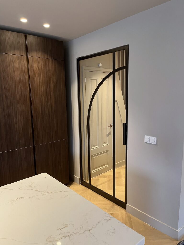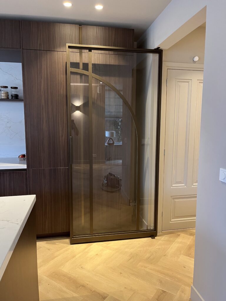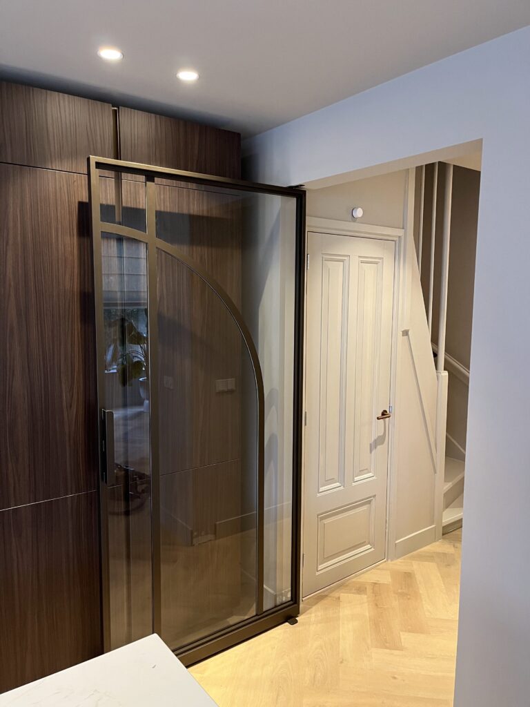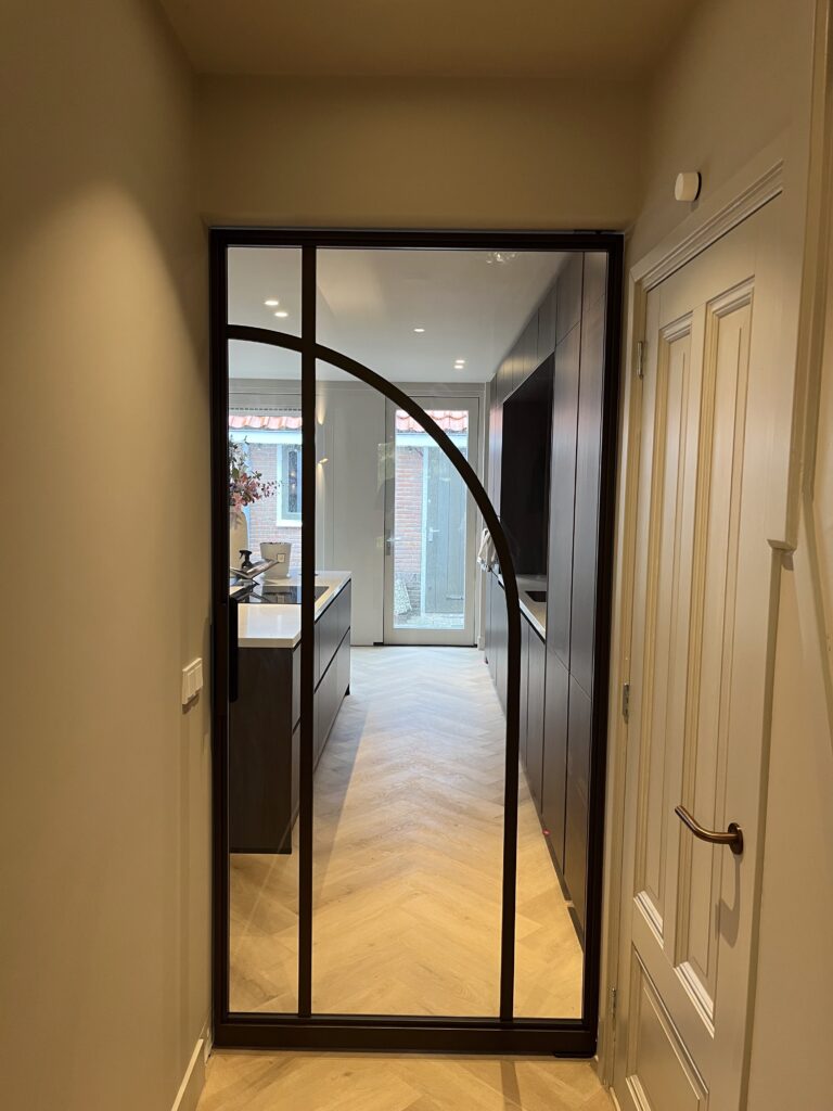 Voor een klant in Loenen aan de Vecht hebben wij een unieke enkele taatsdeur met boog in de glasverdeling op maat gemaakt en geplaatst. Deze maatwerk deur verbindt stijlvol de keuken met de rest van de woning en sluit perfect aan bij het interieur.
